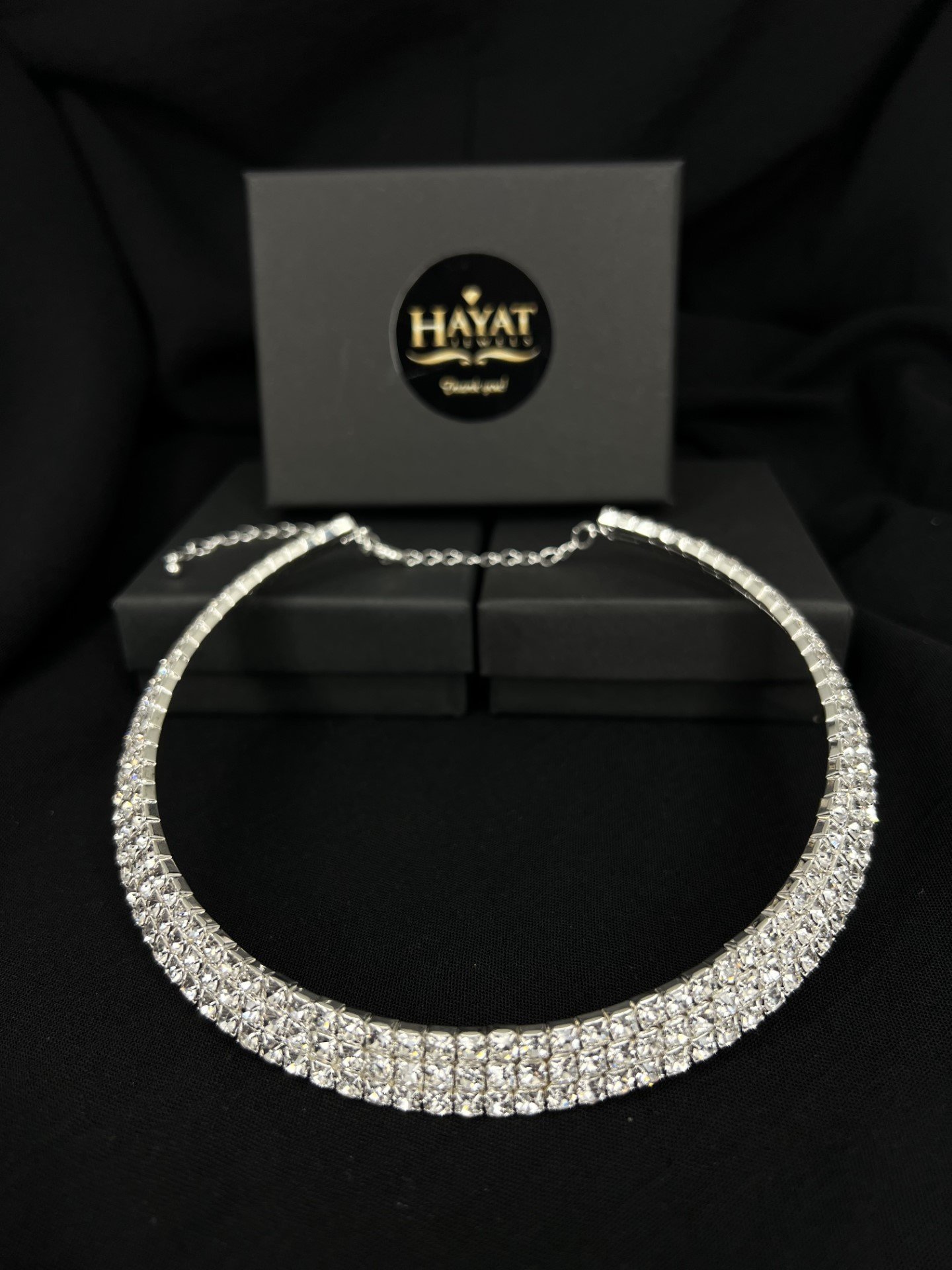 Γυναικείο κολιέ τσοκερ σταθερό φτιαγμένο από ανοξείδωτο ατσάλι άριστης ποιότητας το οποίο θα σε κάνει να ξεχωρίζεις σε κάθε σου εμφάνιση. Το κολιέ αποτελείται από ζιργκόν σε ασημί απόχρωση.