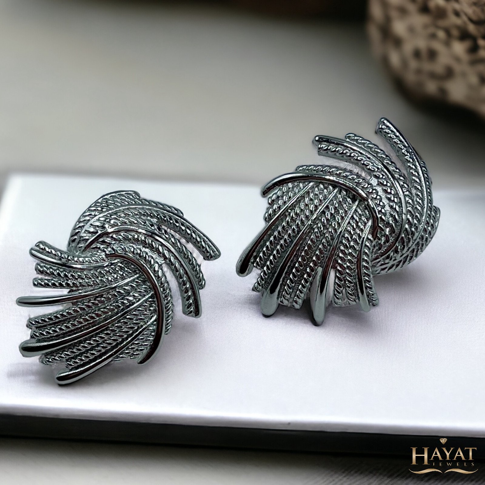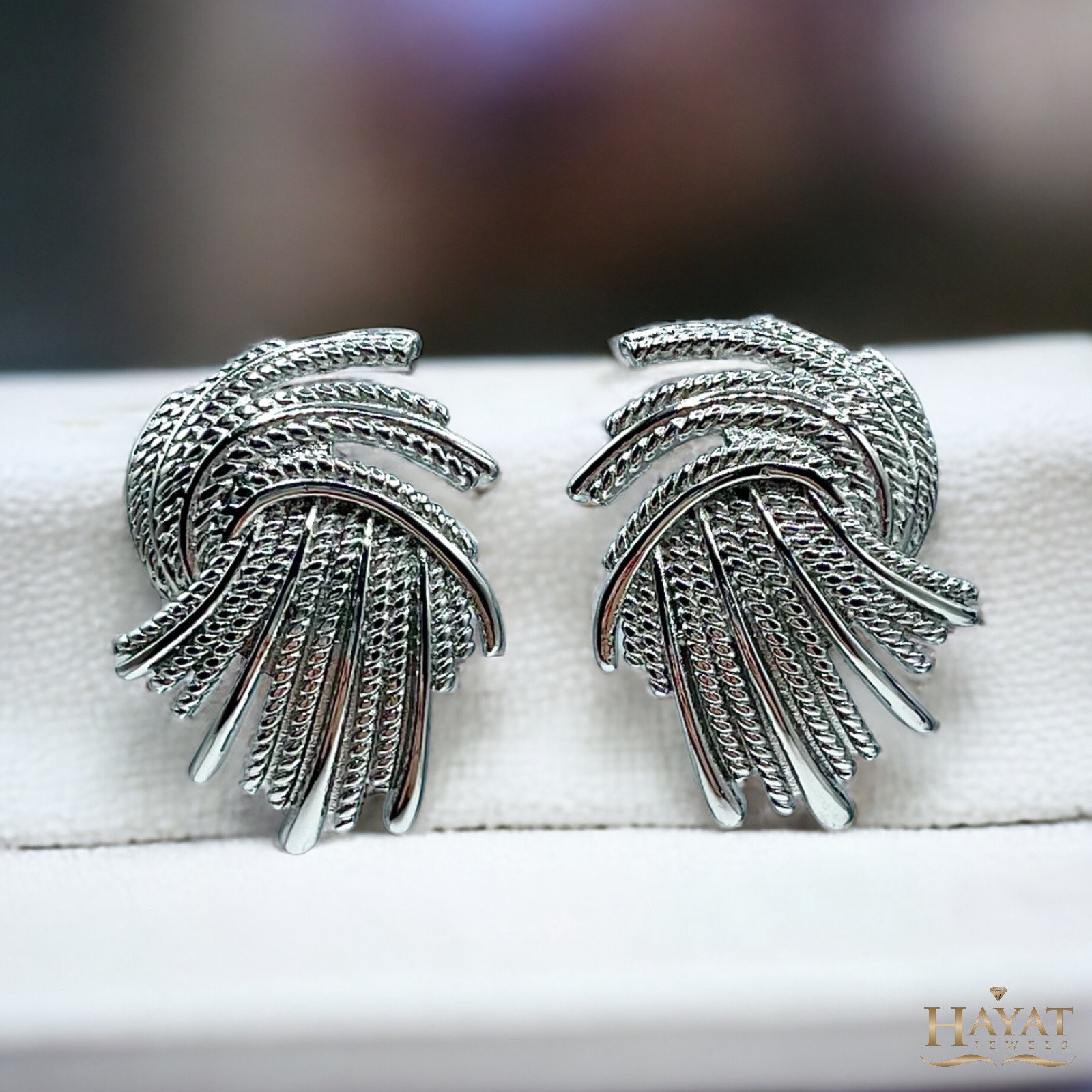 Καρφωτά σκουλαρίκια κατασκευασμένα από ανοξείδωτο ατσάλι υψηλής ποιότητας σε ασημί απόχρωση. Η λεπτομερής ανάγλυφη επιφάνεια προσδίδει μια αίσθηση κίνησης και ελαφρότητας, ενώ παράλληλα διακρίνεται για την μοντέρνα αισθητική της.