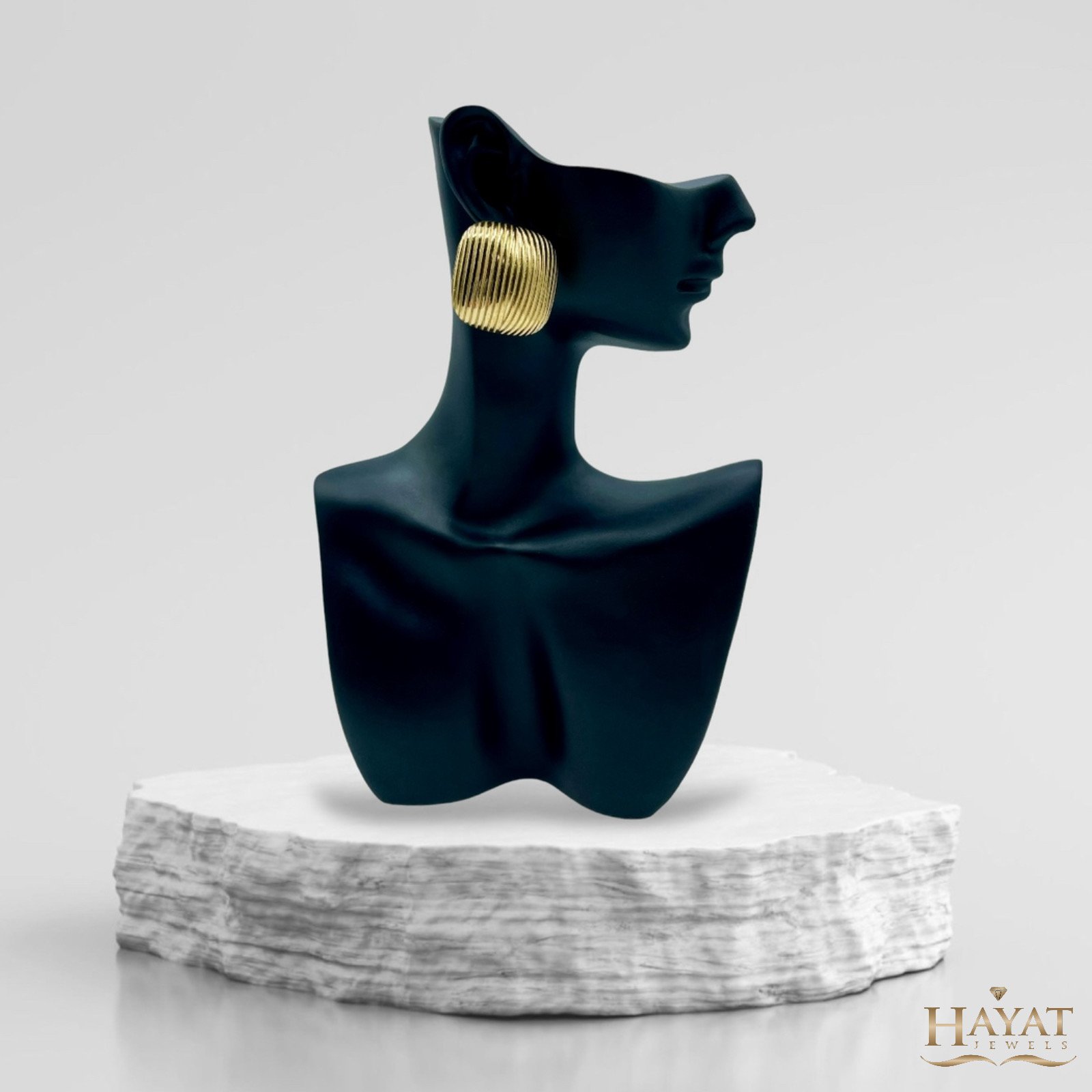 Σκουλαρίκια Vintage πολύ στυλάτα και διακριτικά στο σχήμα τους. Κατασκευασμένα από ανθεκτικό ανοξείδωτο ατσάλι σε χρυσή απόχρωση. Η υποαλλεργική τους φύση εγγυάται ότι μπορούν να φορεθούν όλη μέρα με άνεση, χωρίς τον κίνδυνο ερεθισμών ή αλλεργιών.Αυτά τα μοναδικά και στυλάτα σκουλαρίκια, με το διακριτικό τους σχήμα και την ριχτή επιφάνεια, αποτελούν μια προσθήκη που ξεχωρίζει σε κάθε εμφάνιση.