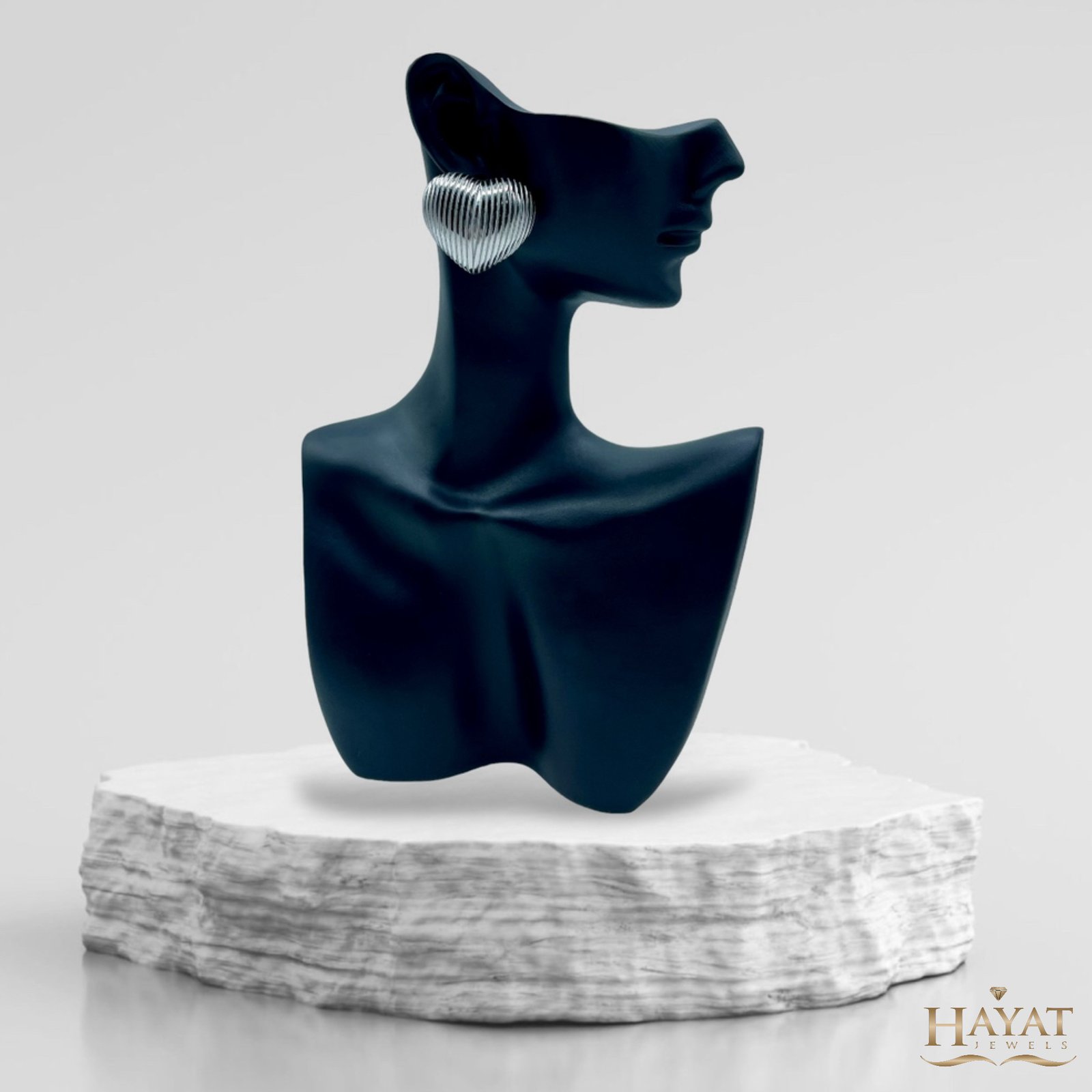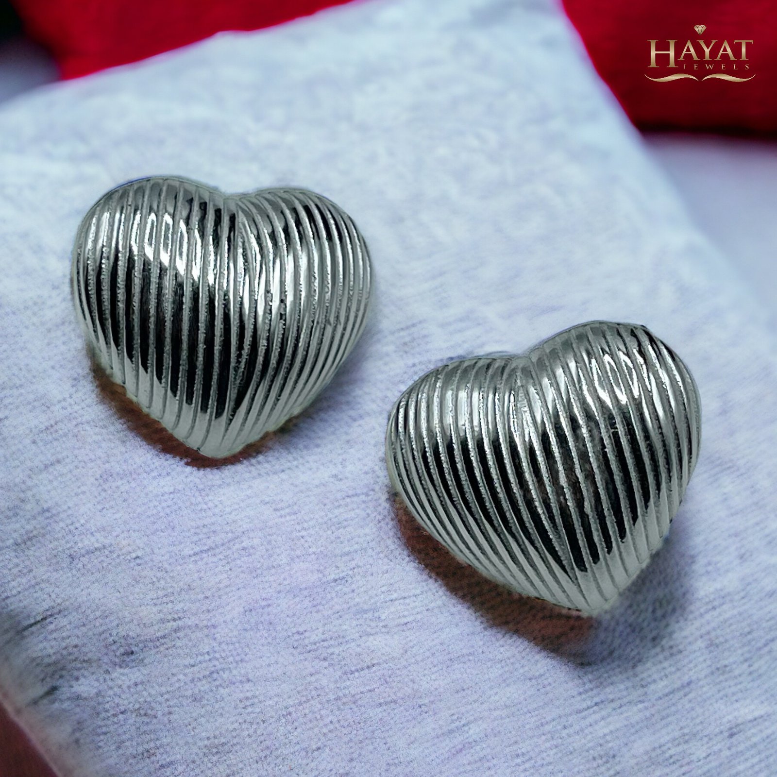 Σκουλαρίκια Vintage πολύ στυλάτα και διακριτικά στο σχήμα τους. Κατασκευασμένα από ανθεκτικό ανοξείδωτο ατσάλι σε ασημί απόχρωση. Η υποαλλεργική τους φύση εγγυάται ότι μπορούν να φορεθούν όλη μέρα με άνεση, χωρίς τον κίνδυνο ερεθισμών ή αλλεργιών.Αυτά τα μοναδικά και στυλάτα σκουλαρίκια, σε σχήμα καρδιάς και την ριχτή επιφάνεια, αποτελούν μια προσθήκη που ξεχωρίζει σε κάθε εμφάνιση.