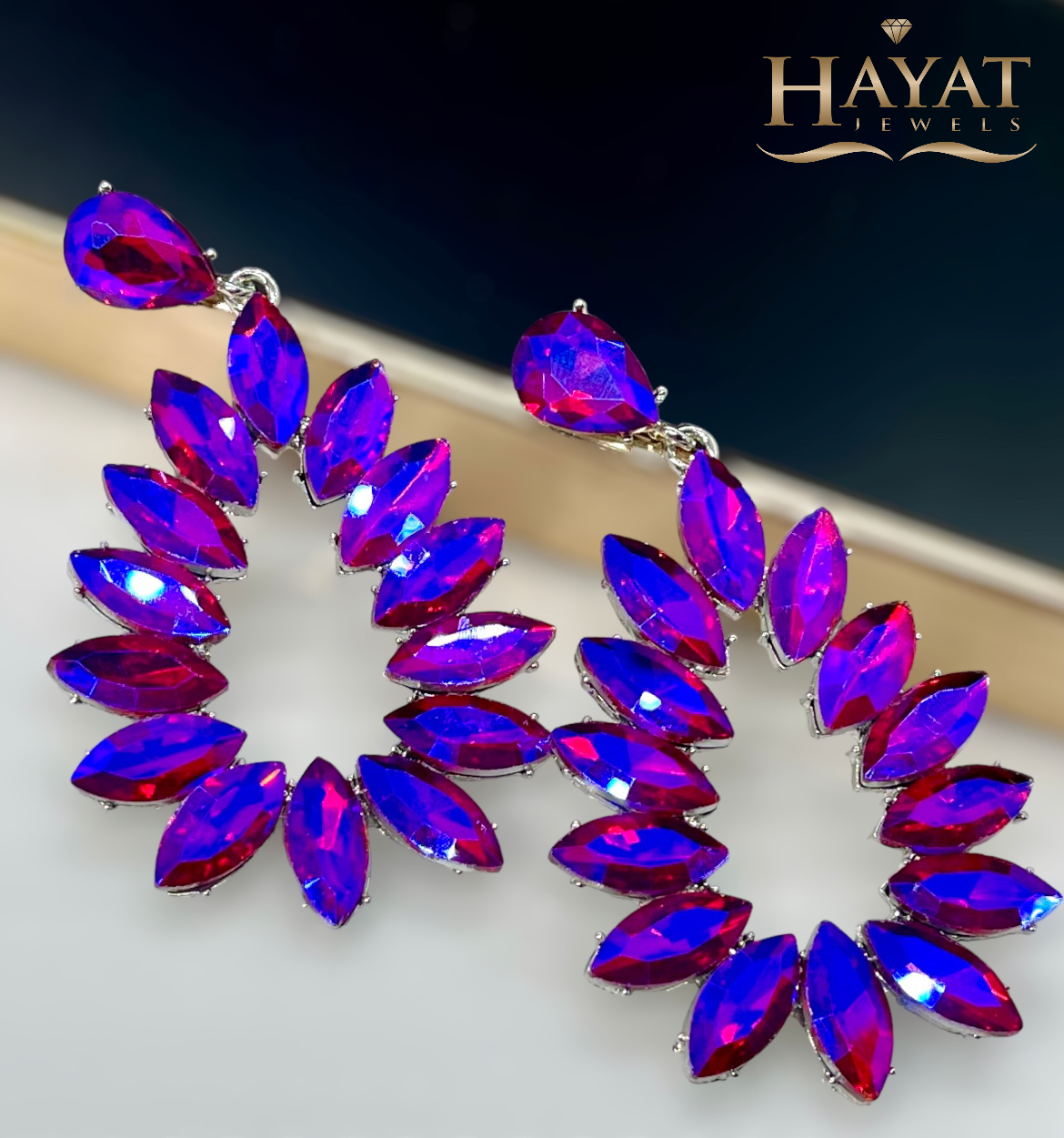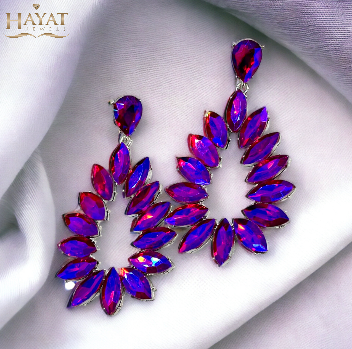 Εντυπωσιακά κρεμαστά σκουλαρίκια σε απόχρωση μωβ-κόκκινου χρώματος με συνολικό μήκος 7cm κατασκευασμένα απο υψηλής ποιότητας ανοξείδωτο ατσάλι ανθεκτικά στο νερό και στις γρατζουνιές.