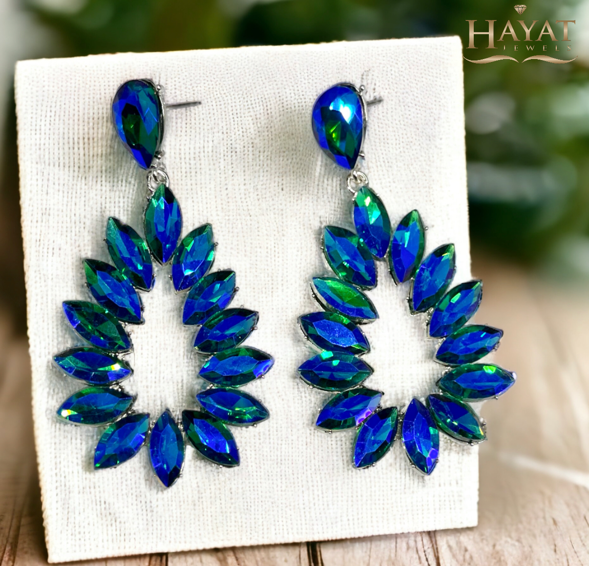 Εντυπωσιακά κρεμαστά σκουλαρίκια σε απόχρωση πράσινου-μπλέ χρώματος με συνολικό μήκος 7cm κατασκευασμένα απο υψηλής ποιότητας ανοξείδωτο ατσάλι ανθεκτικά στο νερό και στις γρατζουνιές.