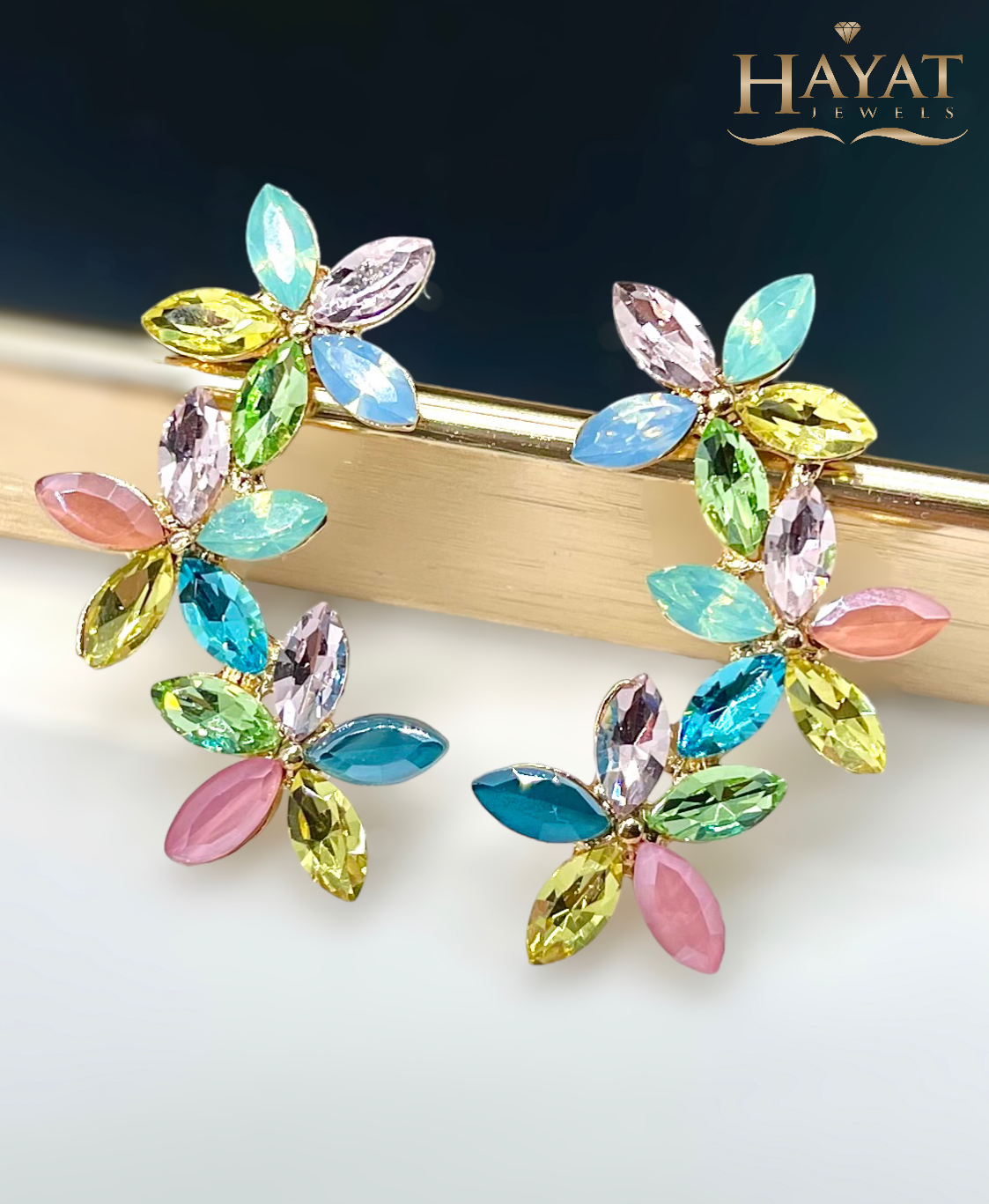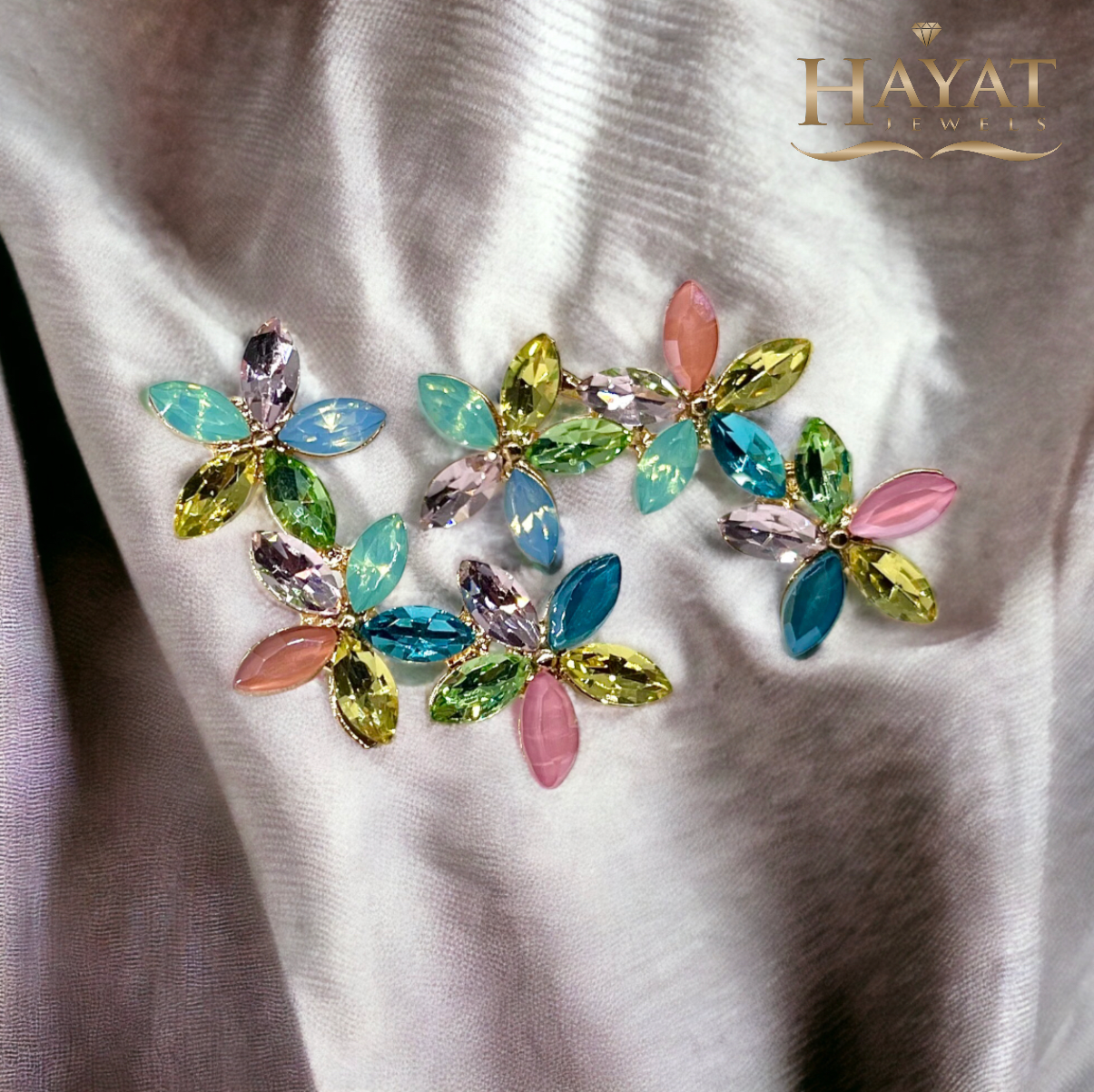 Εντυπωσιακά καρφωτά σκουλαρίκια σε απόχρωση ανοιξιάτικων χρωμάτων με συνολικό μήκος 4cm κατασκευασμένα απο υψηλής ποιότητας ανοξείδωτο ατσάλι ανθεκτικά στο νερό και στις γρατζουνιές.