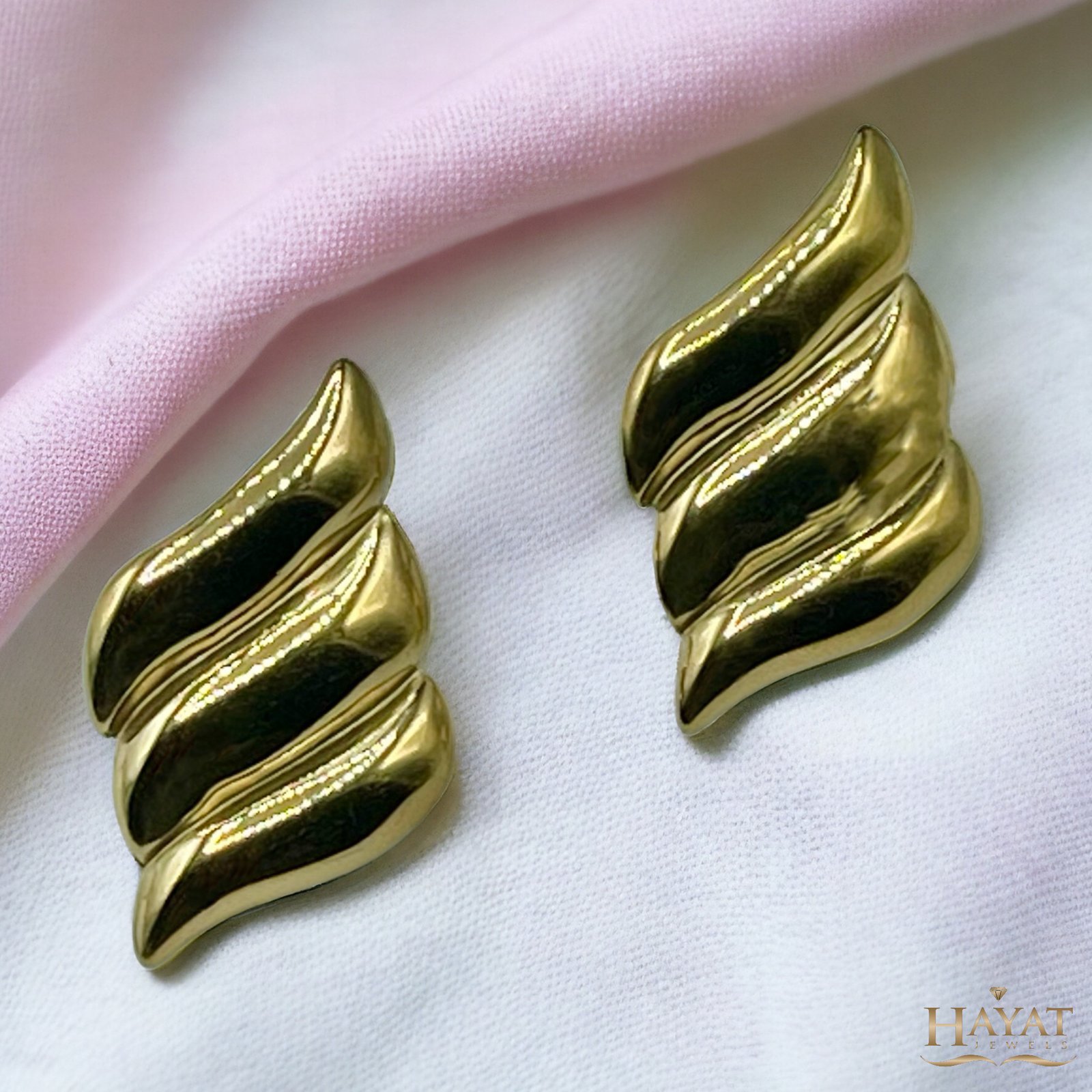 Κομψά Σκουλαρίκια Vintage σε σχήμα Φτερά από Ανοξείδωτο Ατσάλι σε χρυσή απόχρωση. Η εξαιρετική επιμετάλλωση προσδίδει ένα σύγχρονο και διαχρονικό χαρακτήρα, τέλειο για κάθε περίσταση. Η Υποαλλεργική τους σύνθεση τα καθιστούν ιδανικά για ευαίσθητα δέρματα,προσφέροντας άνεση και ασφάλεια .